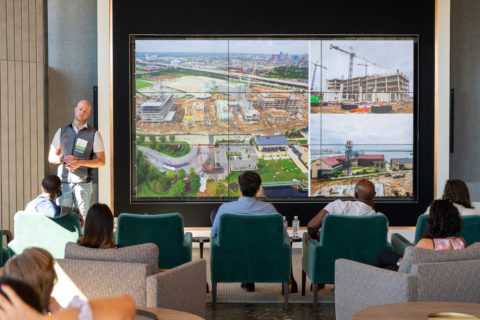 The 2021 Americas Young Leaders Exchange in Baltimore highlighted a variety of Baltimore’s historic buildings and the innovative ways developers are harnessing those assets, showcased Baltimore’s majestic waterfront, addressed the significance of Baltimore’s public market system, and drilled down on real estate development projects of national importance. Development sites ranged from small- and mid-scale historic renovations to one of the largest urban revitalization projects in the country, along with the tools that are being deployed to drive these investments.